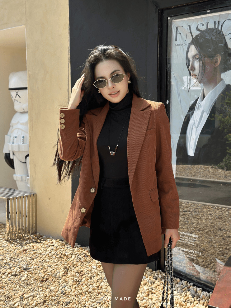 Áo blazer nữ nhung tăm form rộng sang trọng