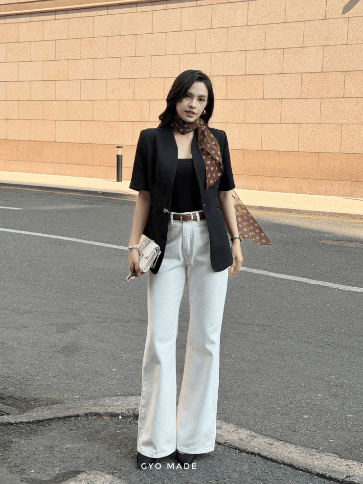 Áo blazer nữ dễ phối cùng quần tây, chân váy hoặc quần jean. Khi kết hợp cùng áo thun hoặc sơ mi, outfit trở nên hài hòa.