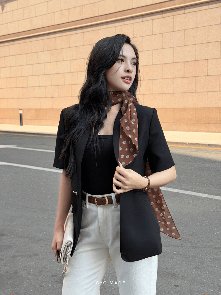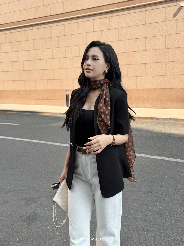 Áo blazer nữ GYOMADE® mang phong cách thanh lịch và hiện đại. Thiết kế tay ngắn giúp tổng thể trẻ trung và dễ mặc trong nhiều hoàn cảnh.