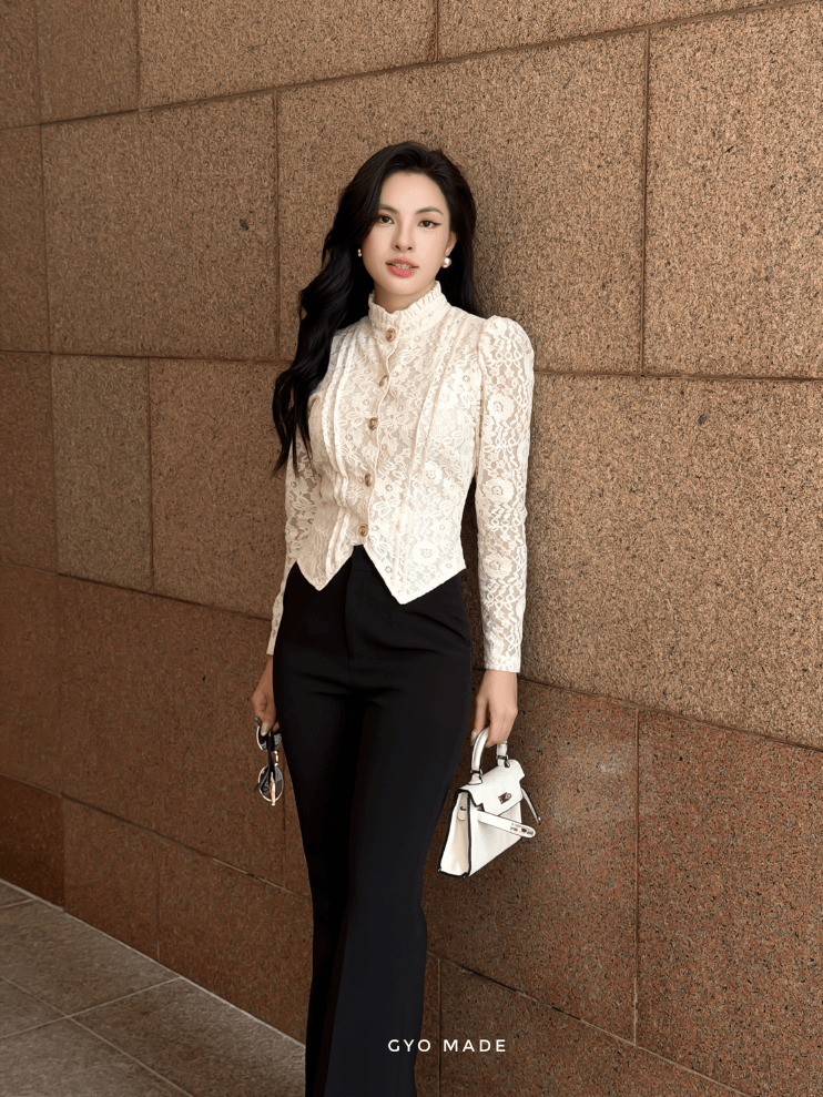 Áo ren nữ GYOMADE® mang đến vẻ đẹp thanh lịch và sang trọng. Thiết kế form ôm giúp tôn dáng rõ rệt. Sản phẩm phù hợp phong cách công sở hiện đại.