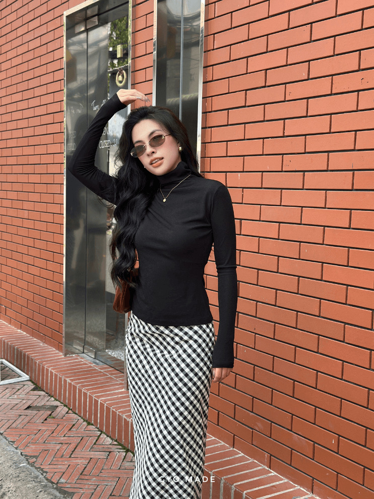 Áo thun cổ lọ đen GYOMADE® là item cơ bản nhưng không bao giờ lỗi mốt. Thiết kế tối giản giúp nàng dễ mặc và dễ phối đồ.
