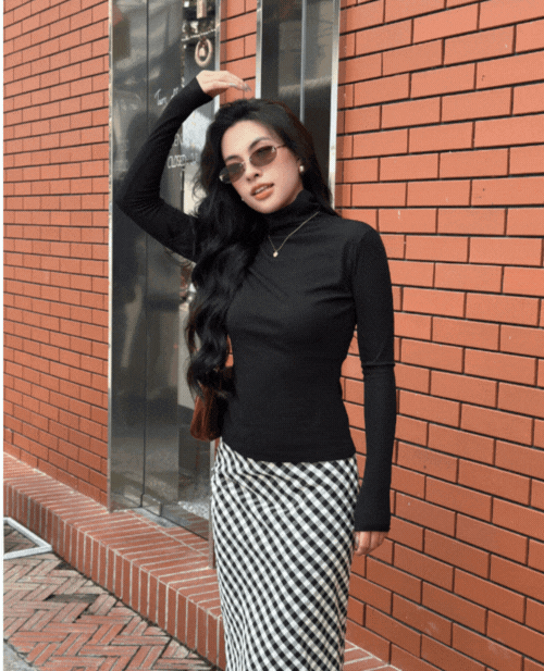 ## Áo thun cổ lọ đen ôm body tôn dáng