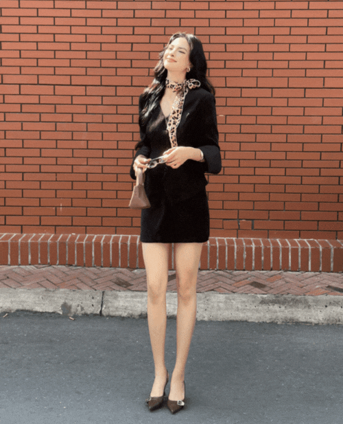 Chiếc chân váy bố nhung được thiết kế với phom dáng ngắn vừa phải, giúp khoe trọn đôi chân nhưng không gây phản cảm. Dáng váy ôm nhẹ phần hông, tạo cảm giác vòng eo gọn gàng và tổng thể cân đối hơn.