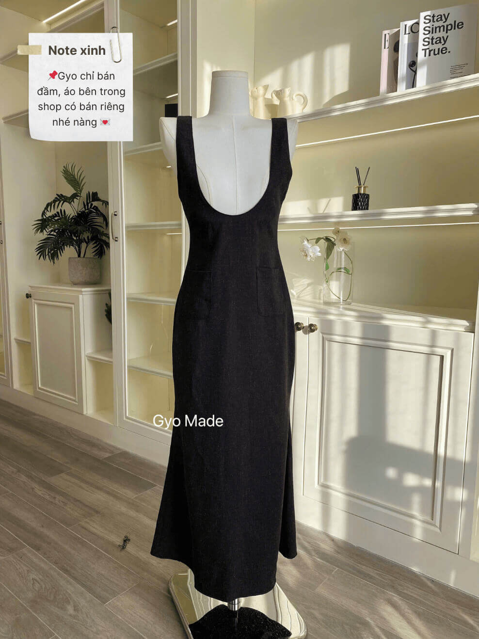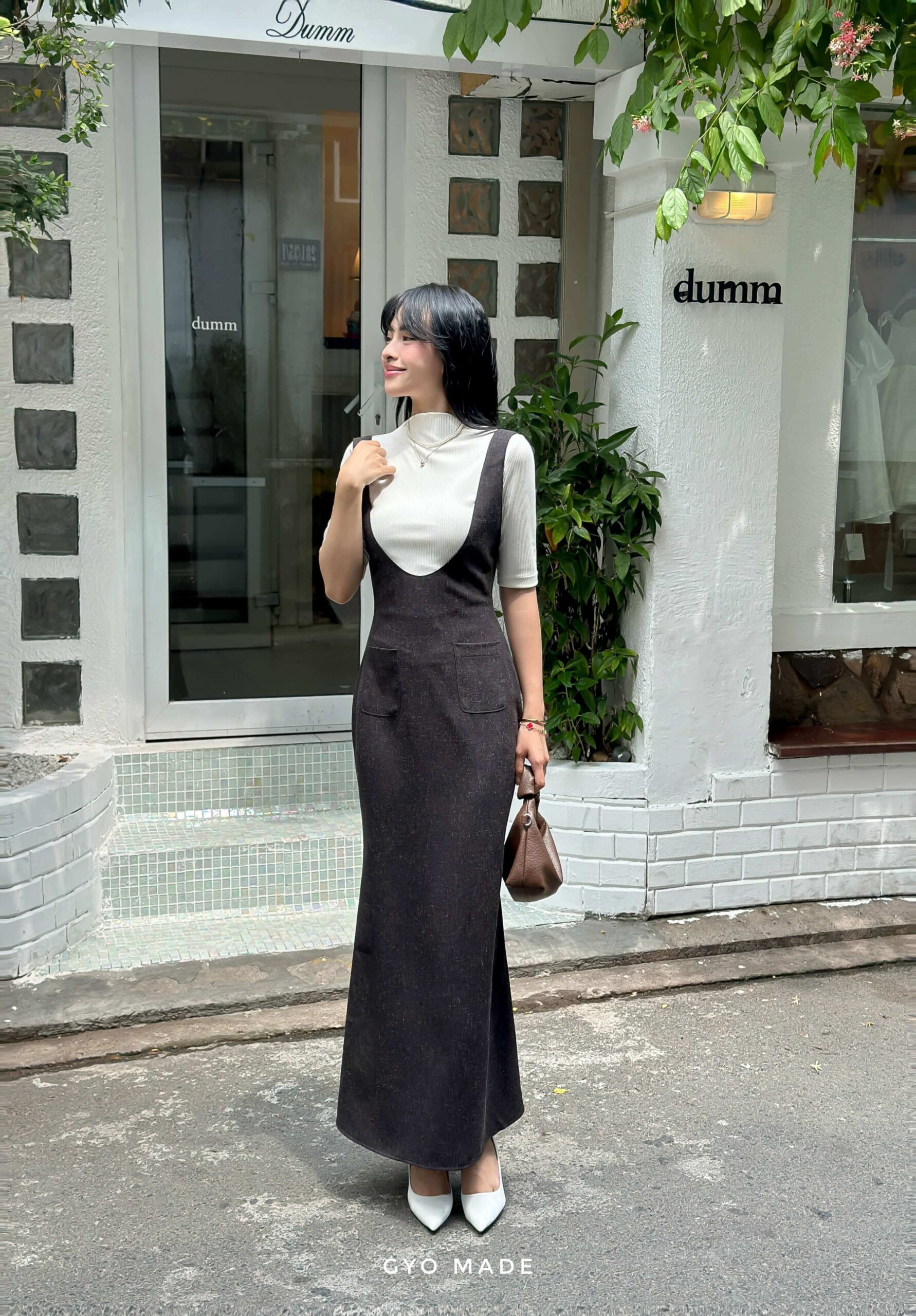 Đầm yếm dáng dài Gyo Made mang đến phong cách thanh lịch và quyến rũ đúng chuẩn Hàn Quốc. Thiết kế tinh tế với đường cắt ôm nhẹ, giúp nàng tôn dáng mà vẫn giữ được sự thoải mái tự nhiên.