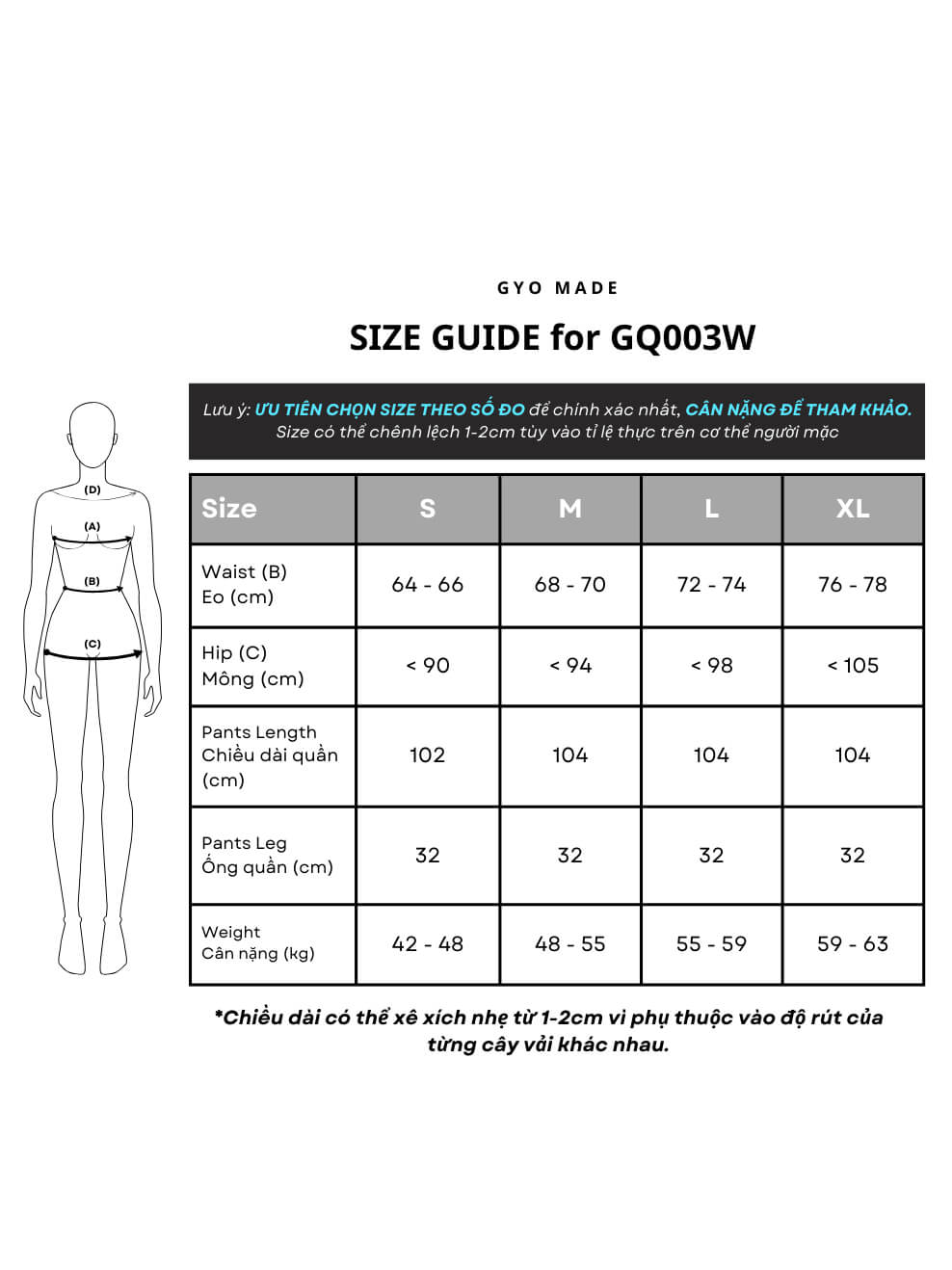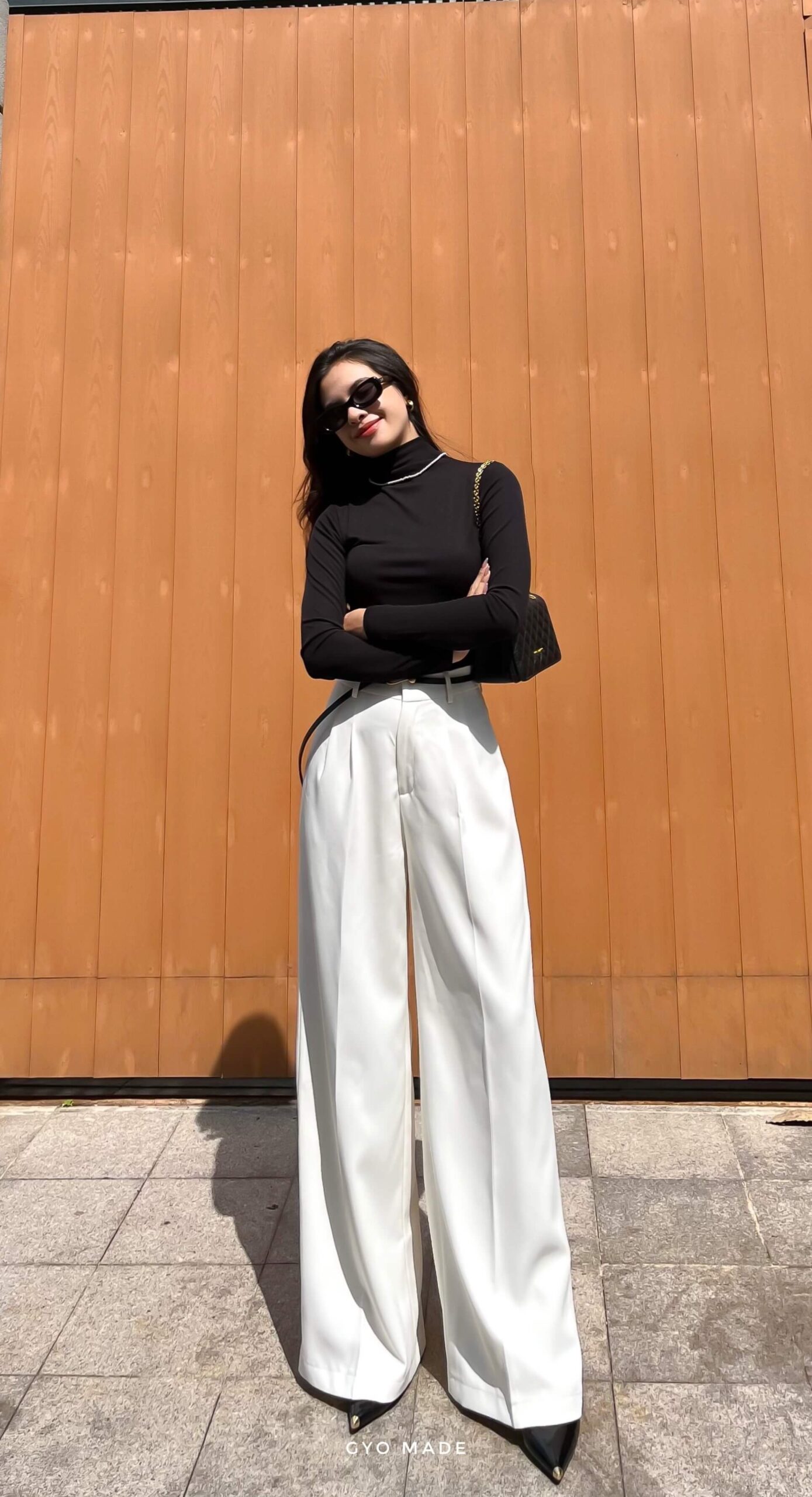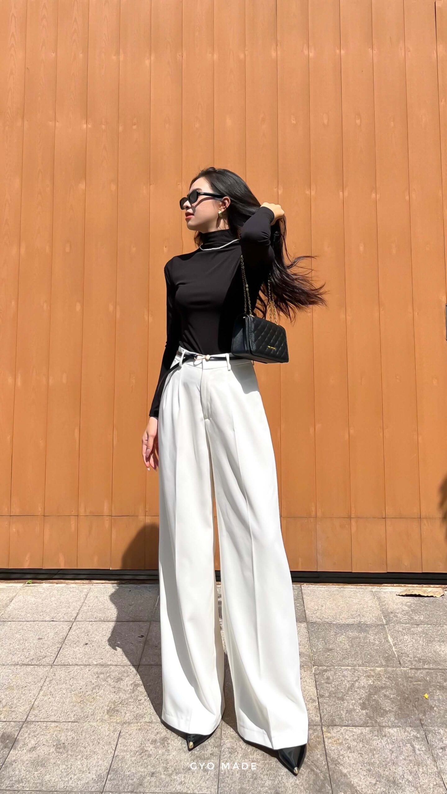 Chiếc quần ống rộng nữ cạp cao được Gyo thiết kế chuẩn tỉ lệ cơ thể người Việt, giúp phần eo và hông cân đối hơn. Dáng quần suông dài chạm gót, giúp đôi chân trông cao và thẳng hơn. Phần cạp cao được may chắc chắn, vừa khít vòng eo mà vẫn thoải mái khi di chuyển. Dáng quần bay nhẹ, không kén dáng người, mặc lên cực kỳ sang và cuốn hút.