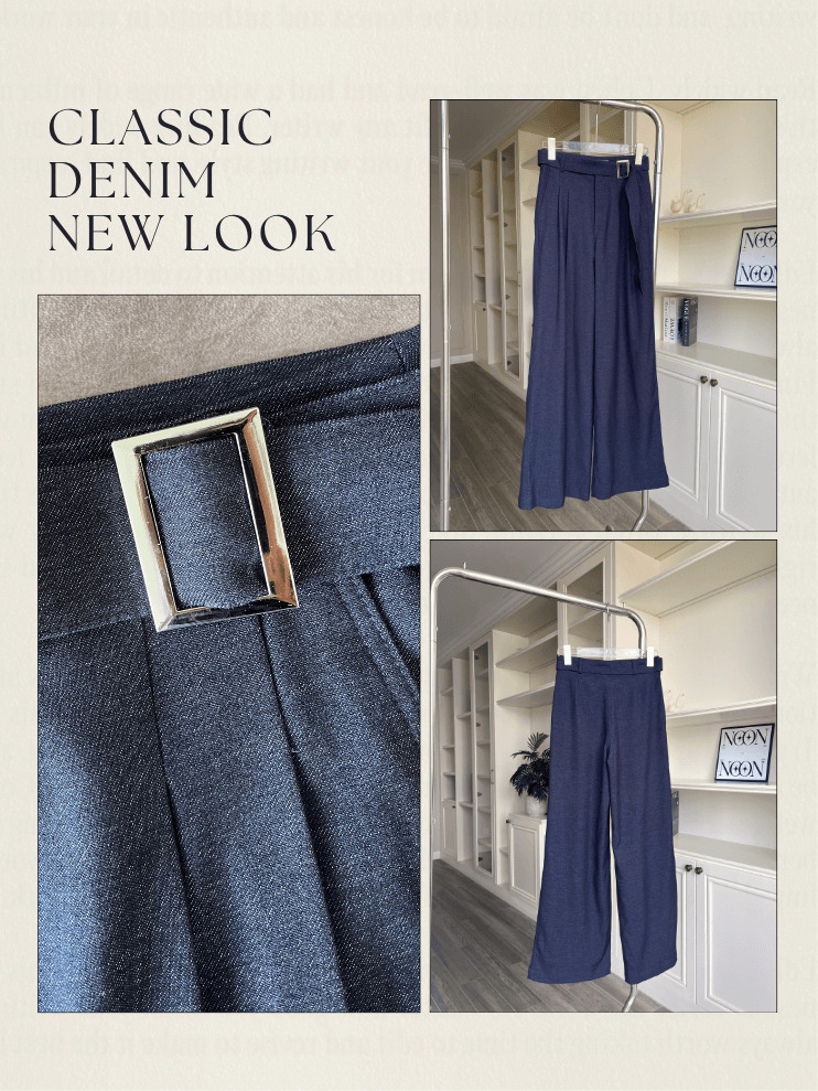 Sản phẩm sử dụng chất denim cao cấp, bề mặt vải mịn và dày dặn. Vải có độ mềm rũ tự nhiên, không thô cứng như denim truyền thống.